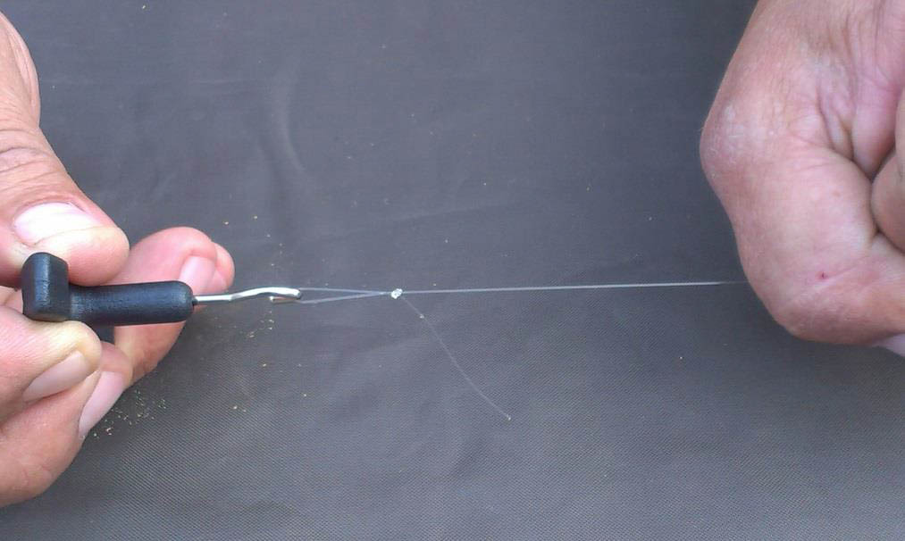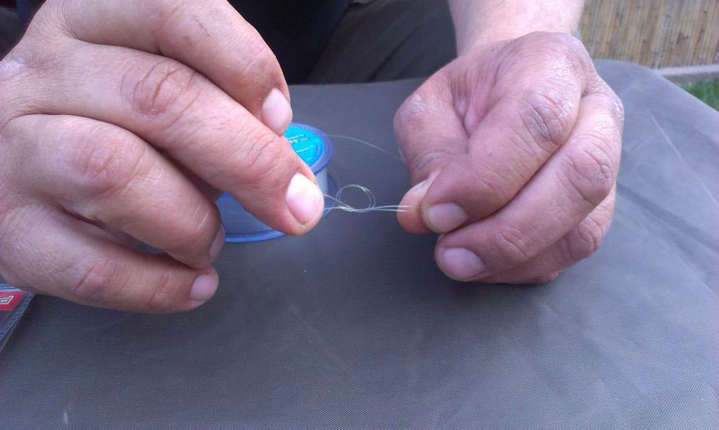 A fluorocarbon zsinóron egyszerű hurkot kötünk és behúzzuk a kötést |