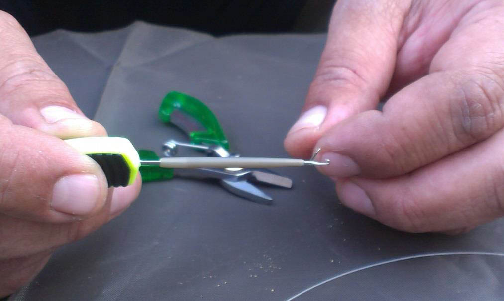 | Kiveszünk egy horgot | A horog szemen átfűzzük a előkezsinórt |