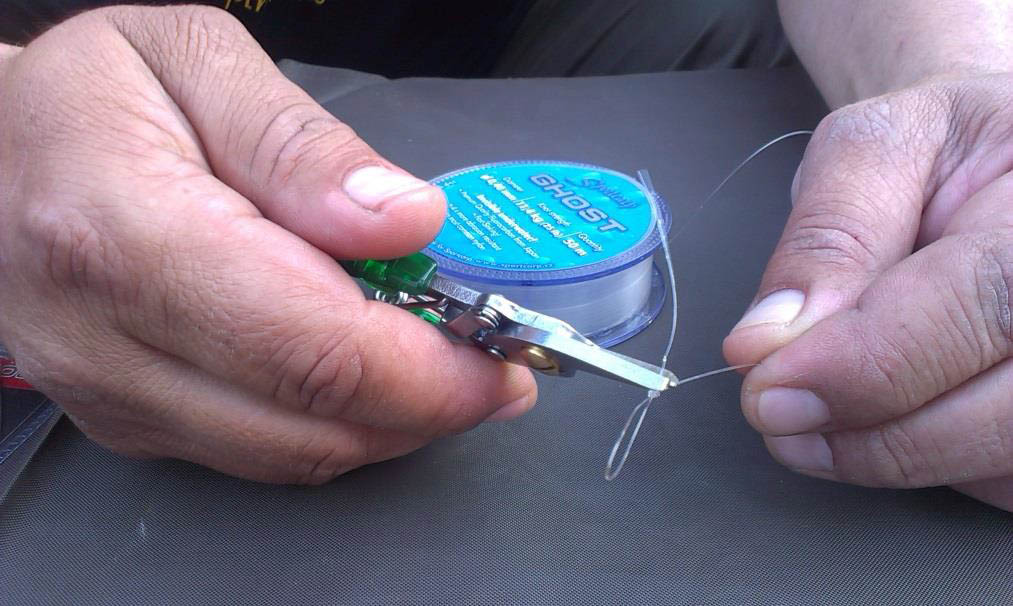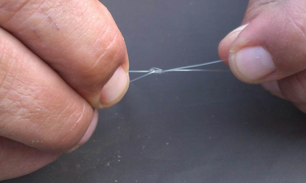 A fluorocarbon zsinóron egyszerű hurkot kötünk és behúzzuk a kötést |