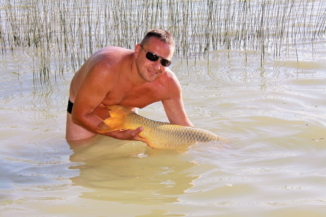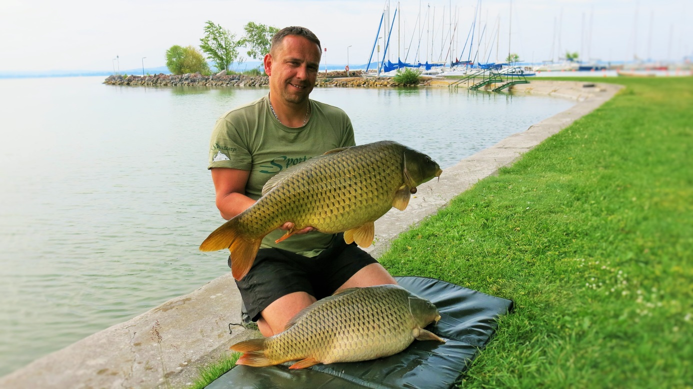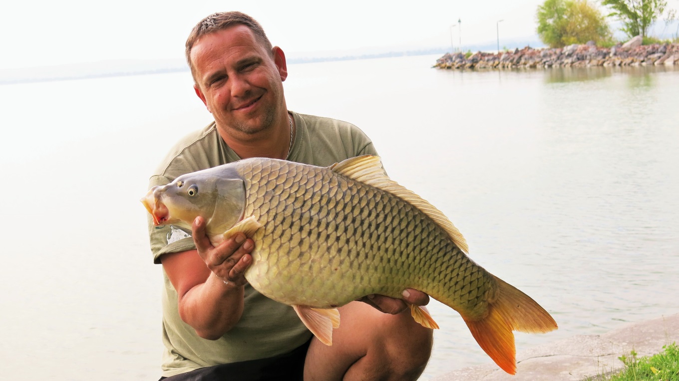 Munkahelyi elfoglaltságaink miatt a Balaton partján 4 napot és 3 éjszakát szándékoztunk eltölteni. A túra első 24 órájára dobálós pecát terveztünk, azzal a kitétellel, hogy az eredmények alapján eldöntjük, hogyan tovább. Az előző túrán szerzett ismeretek fényében már tudtam, hogy a parttól kb. 90 m távolságra egy törés húzódik, ahol a vízmélység 2,3 méterről 3,1 méterre vált, a törés szélét pedig apró kagylók borítják. Mivel mostani horgászatunkat ugyancsak az említett helyen akartuk megkezdeni, egy kb. 30 m széles és kb. 200 m hosszú sávon, 5 kg - 20 mm átmérőjű Monster Spice ízesítésű bojlit szórtam szét, dobócső segítségével. Felcsalizott szerelékeinket az etetett sáv elé és mögé jutattuk, de volt olyan botunk, amelyet a terített asztal közepébe dobtunk. Az első kapás nagyjából 12 óra elteltével jelentkezett, 20 mm GLM Krill ízesítésű bojlira. A tettes egy kb. 5 kg súlyú ponty volt. A többi kapás már szinte futószalagszerűen érkezett, egy órás időközönként, az összes általunk próbált csalira, de minden igyekezetünk ellenére a 7 kg határt sehogyan sem tudtuk átlépni. Elhatároztam tehát, hogy felderítem a távolabbi, az ősszel működő helyeink vonalán húzódó pontokat, melyek a mostani táborunktól kb. 320 – 350 m távolságra voltak. Úgy gyanítottam, hogy a pontyok a kikötőt a lehető legkisebb ívben igyekeznek elkerülni, amit a helyi viszonyok és az áramlatok számlájára írtam. Sejtésem beigazolódott, ugyanis 6 óra elteltével, az új helyekről nagyobb halakat kezdtünk el fogni. Az a kapásmennyiség, amit egytől egyig 10 kg feletti ponty számlájára írhattunk, valóban kellemes meglepetés volt számomra. Mindeddig tévesen azt gondoltam, hogy az itteni pontyok rendkívül óvatosak, így a behordást vagy etetést követően egy hosszabb kapástalan időszak következik, de esetünkben ez egyáltalán nem így volt. Botjainkat gyakorlatilag megállás nélkül újra kellett húzni.